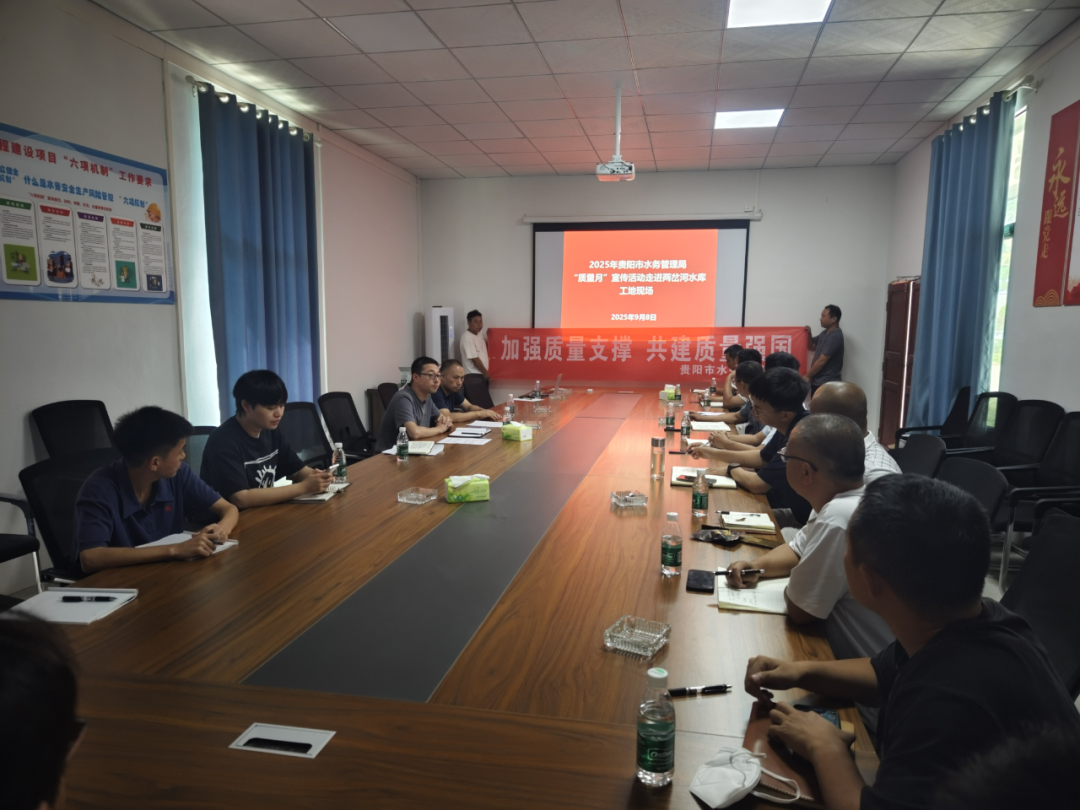 9月8日,为扎实做好水务行业2025年“质量月”宣传活动,市水利工程质量安全技术服务中心赴息烽县两岔河水库工程、花溪区红枫湖至花溪水库连通工程(二标段)等重点工程施工现场开展“质量月”宣传活动。