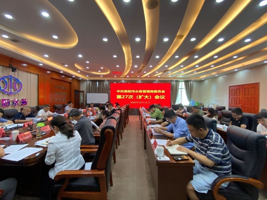 10月11日,贵阳市水务管理局党委书记、局长班德勋主持召开2025年第27次局党委(扩大)会议。会议深入学习贯彻习近平总书记近期重要讲话、重要文章、贺信回信精神,传达落实市委常委会、市政府常务会及贵阳贵安巩固拓展脱贫攻坚成果同乡村振兴有效衔接和农村“两清两改两治理”及“五治”工作等一系列会议精神,研究部署贯彻落实举措,为全局工作指明方向、明确任务。市纪委市监委派驻第九纪检监察组副组长田景生到会指导。局党委成员陈本厚、卢天伦、陈燕出席会议。